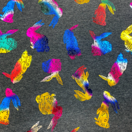 Rainbow, grå melange, guldfolie print - Trikåtyg
