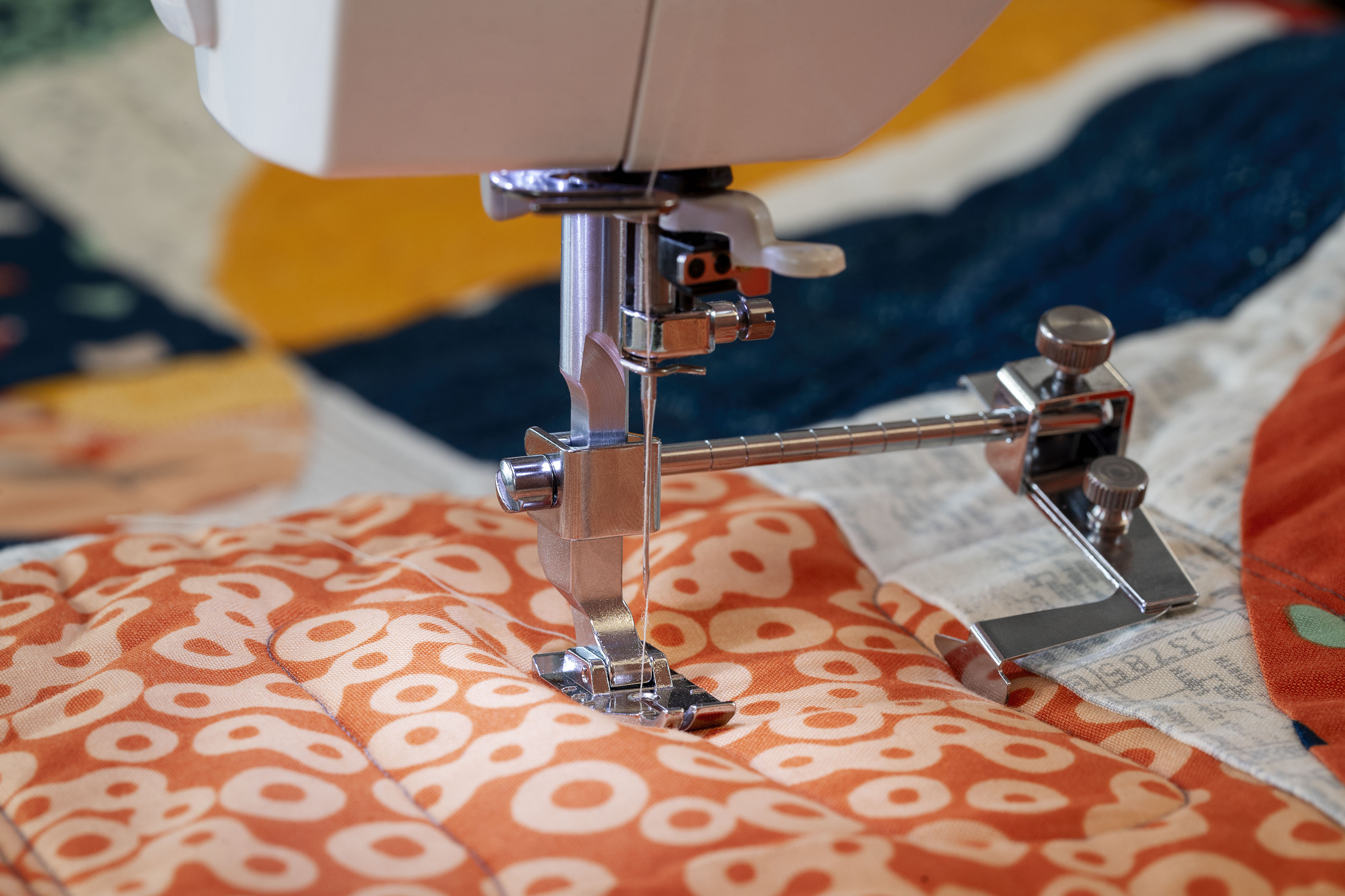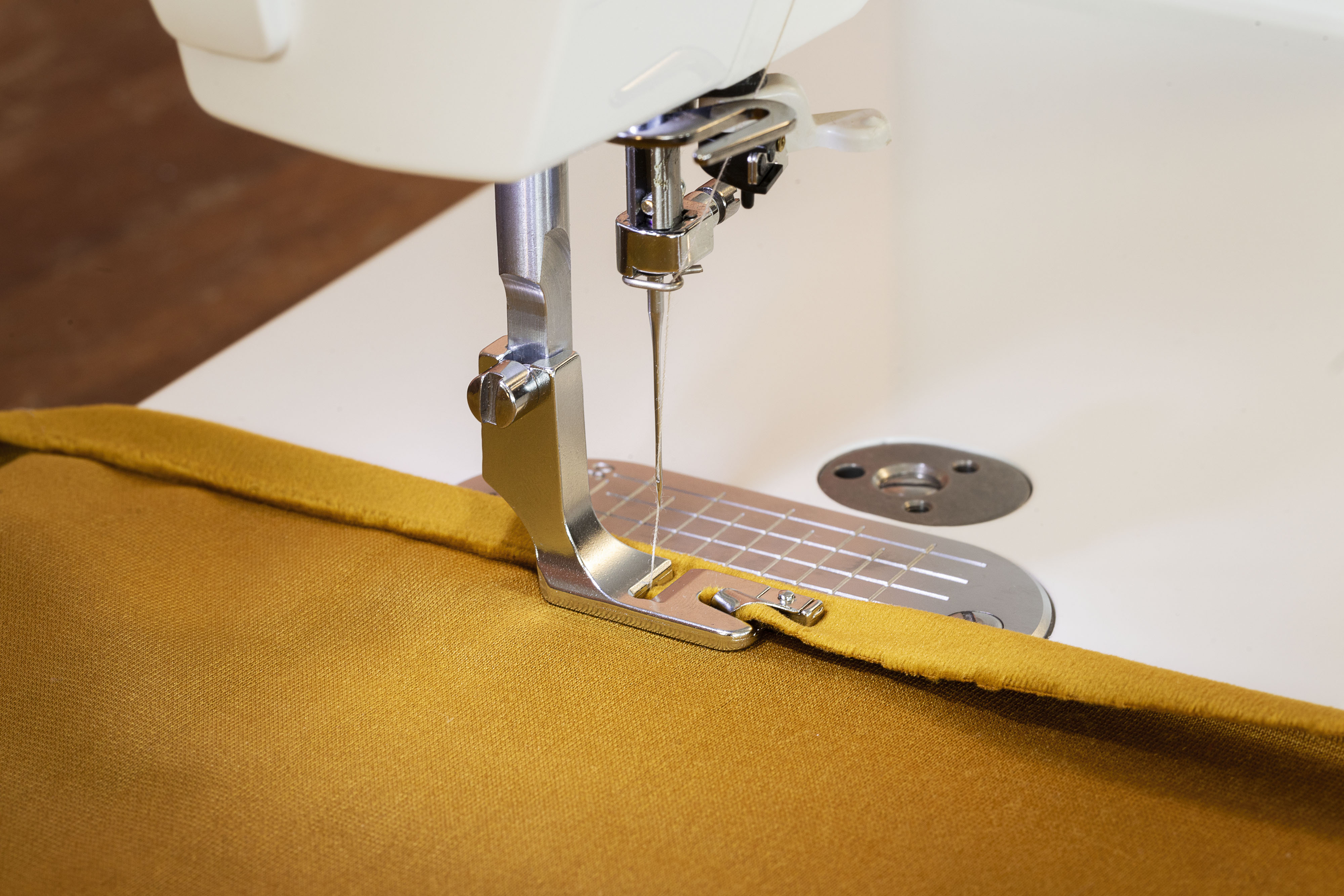 Uppnå perfektion på fållar, franska sömmar och mer med den unika flexibla pressarfoten. Uppdelat i två oberoende rörliga delar kan du sy tyger i två olika tjocklekar fram och bak.