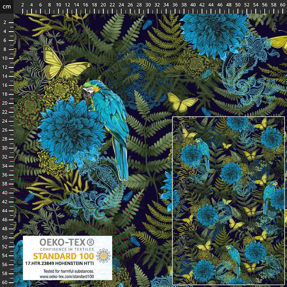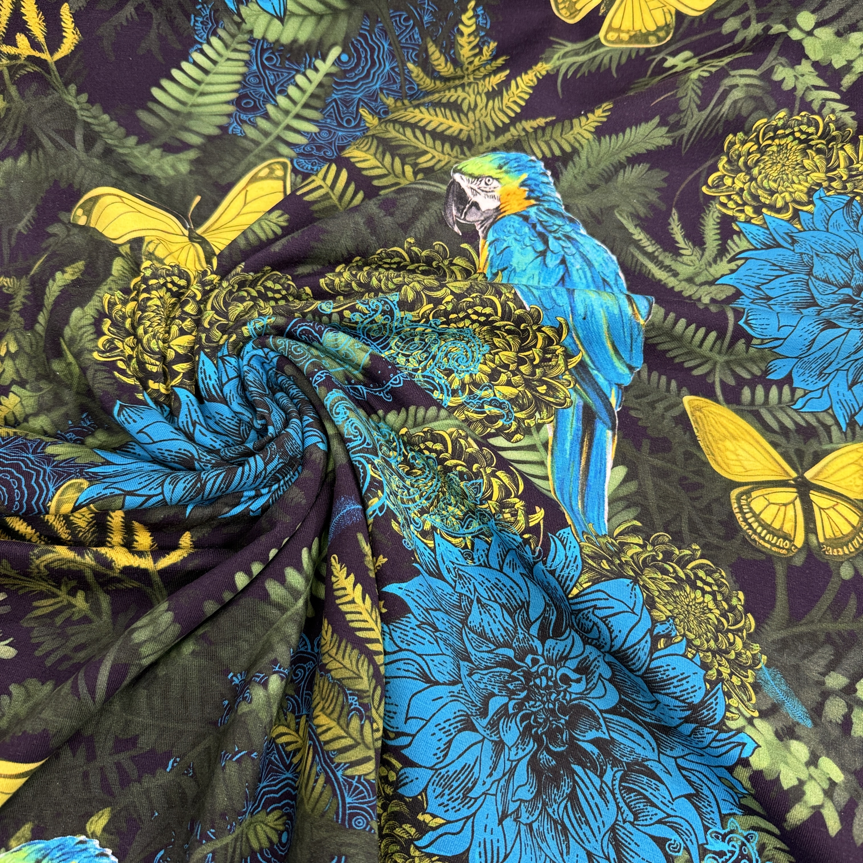 Digital tryckt trikåtyg med motiv.