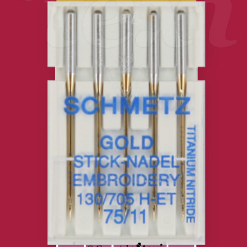 Nålar för broderi och grova och tätvävda material.Med lätt kulspets och förstorat öga. Titannitridbeläggning förbättrar nålens slitstyrka i samband med högt stygnantal och minskar nålsögat sätts igen.