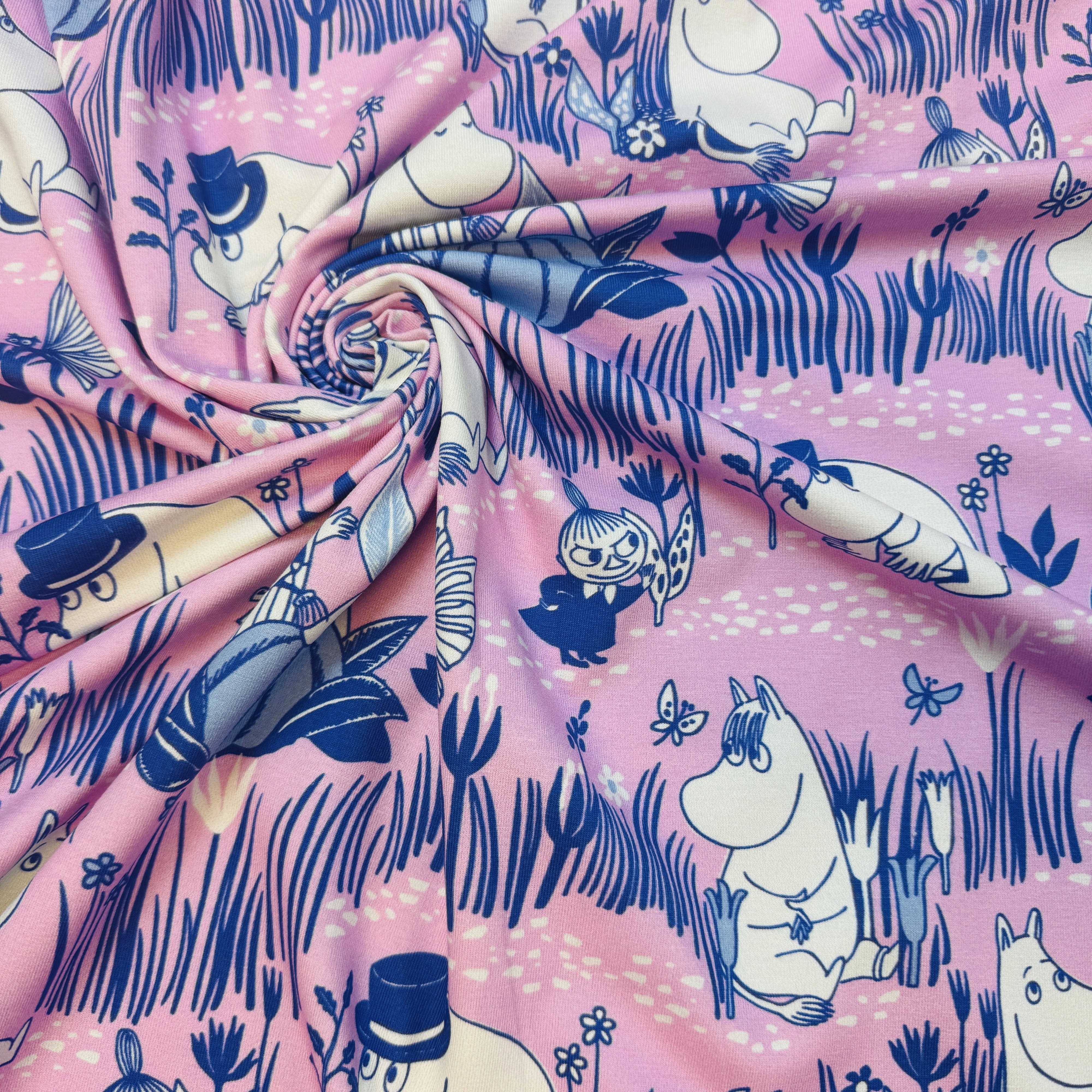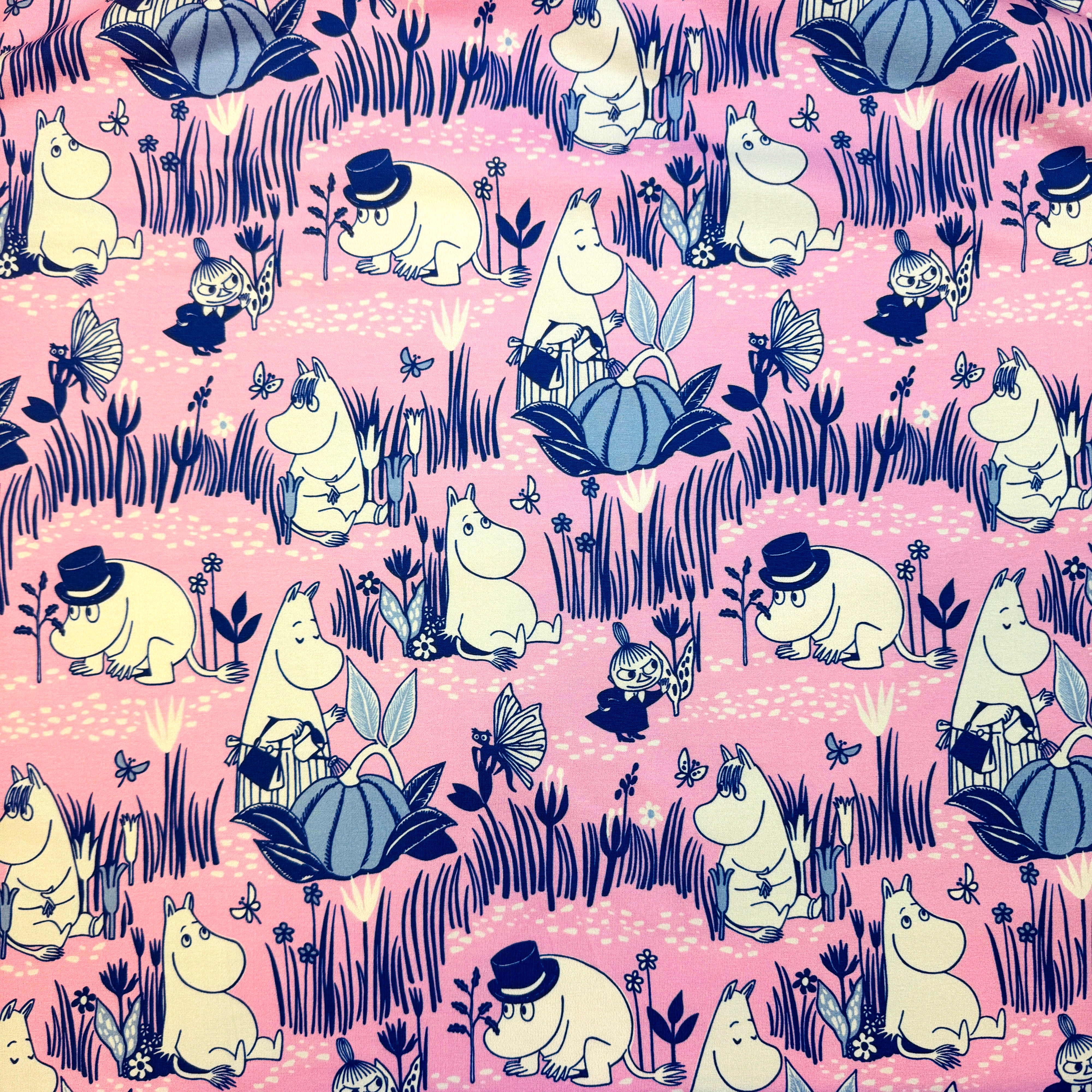 Trikåtyger med Tove Janssons älskade figurer, Mumintrollen.Mumintrollen bor i den vackra Mumindalen i ett högt, blått cylinderformat hus