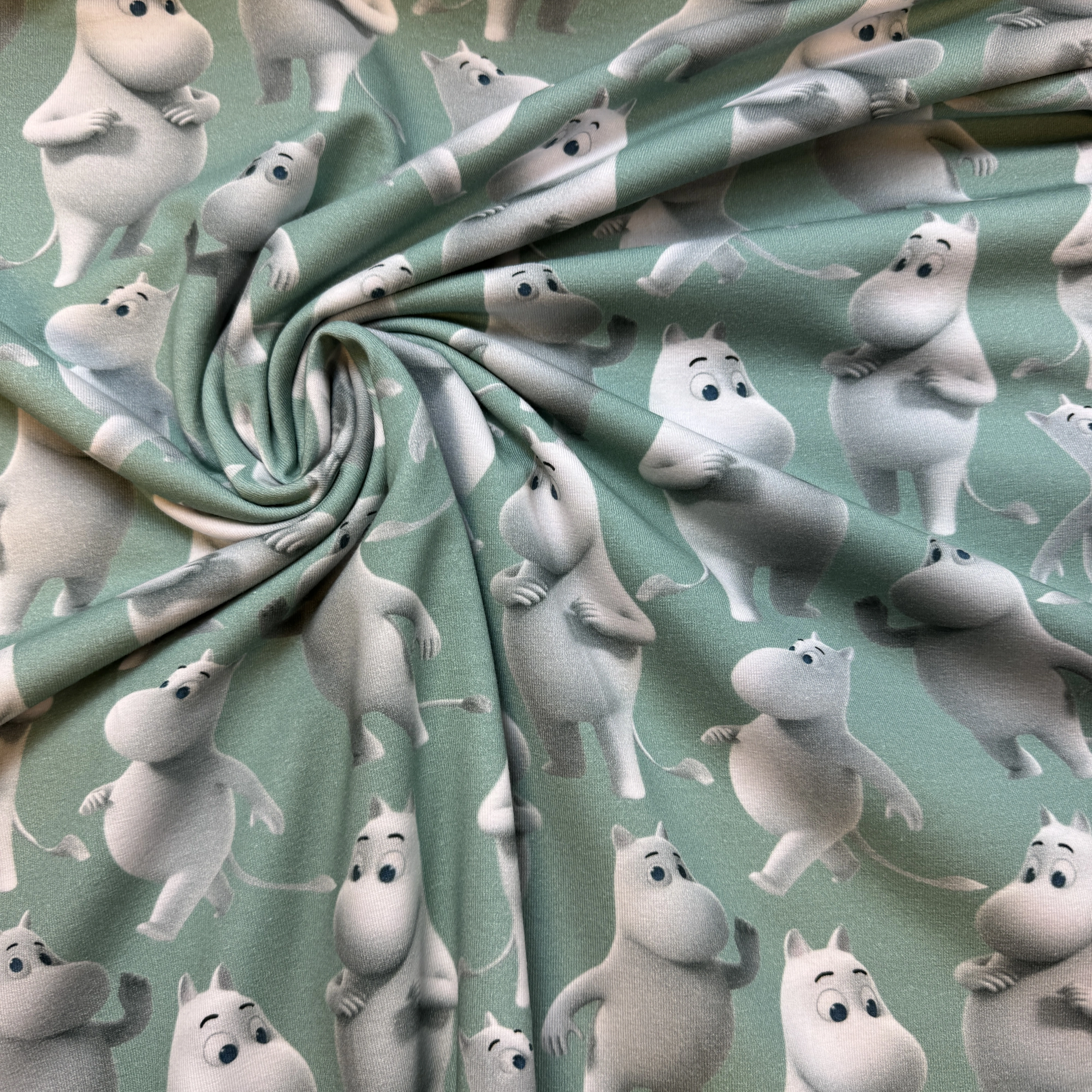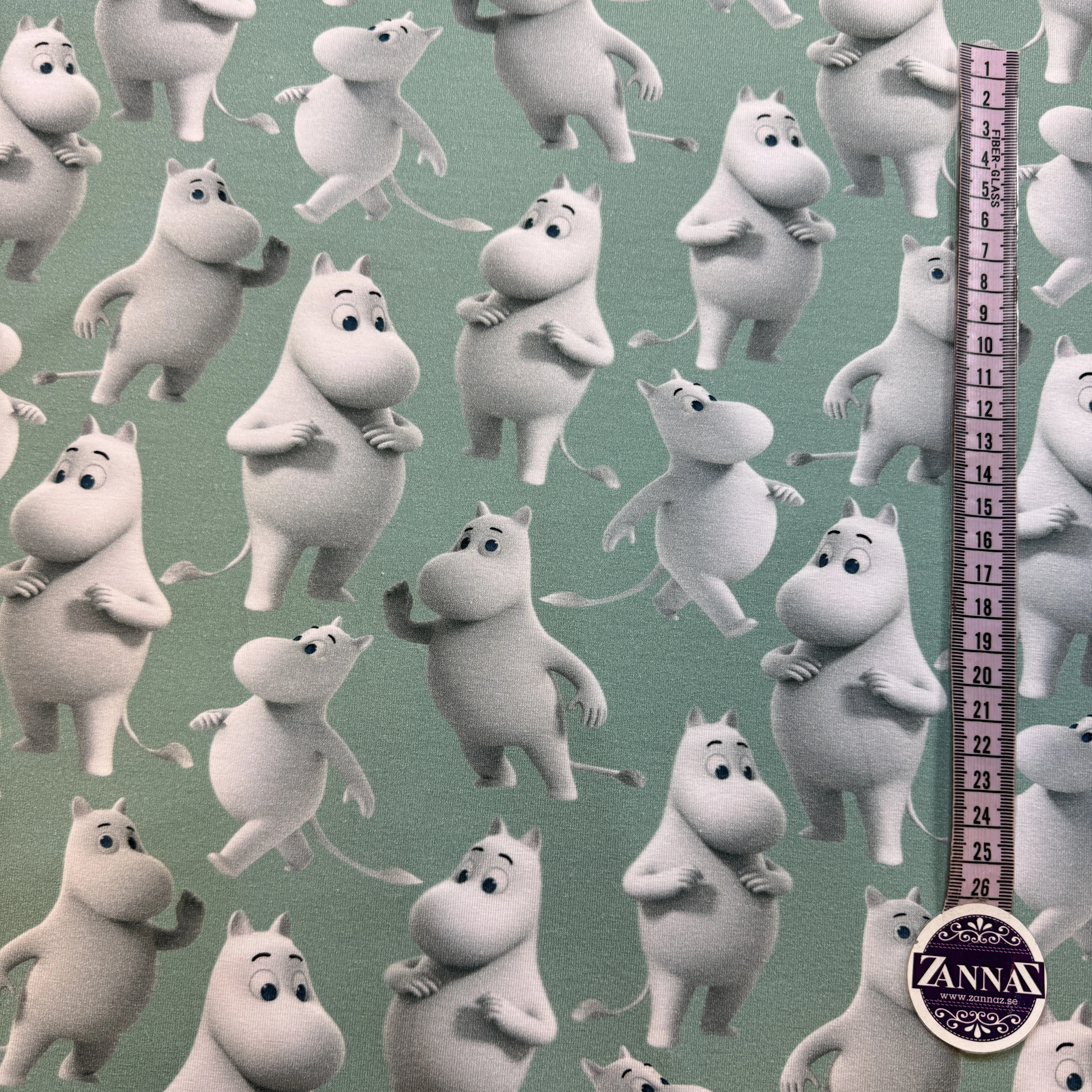 Trikåtyger med Tove Janssons älskade figurer, Mumintrollen.Mumintrollen bor i den vackra Mumindalen i ett högt, blått cylinderformat hus
