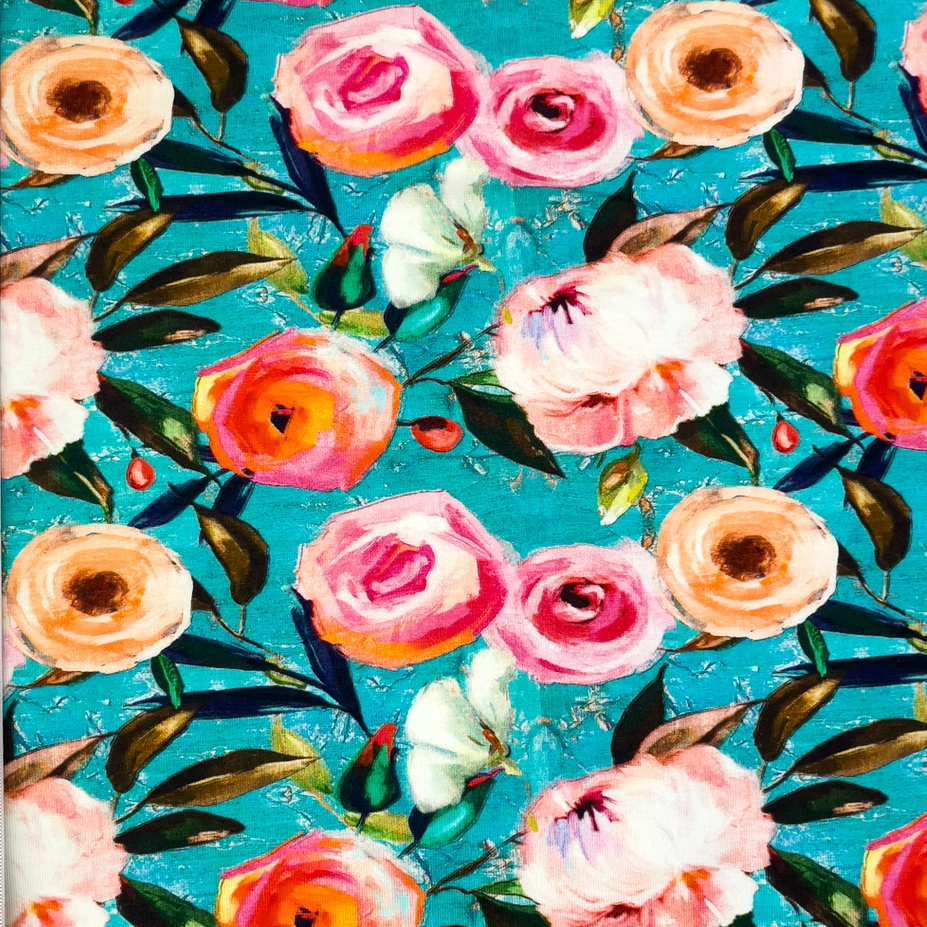 Digital tryckt trikåtyg med motiv.