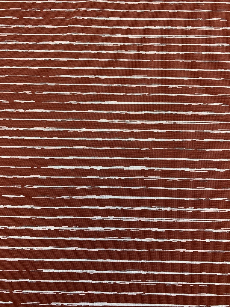 Trikåtyg i ekologiskt bomull med oregelbundna ränder på tvären.