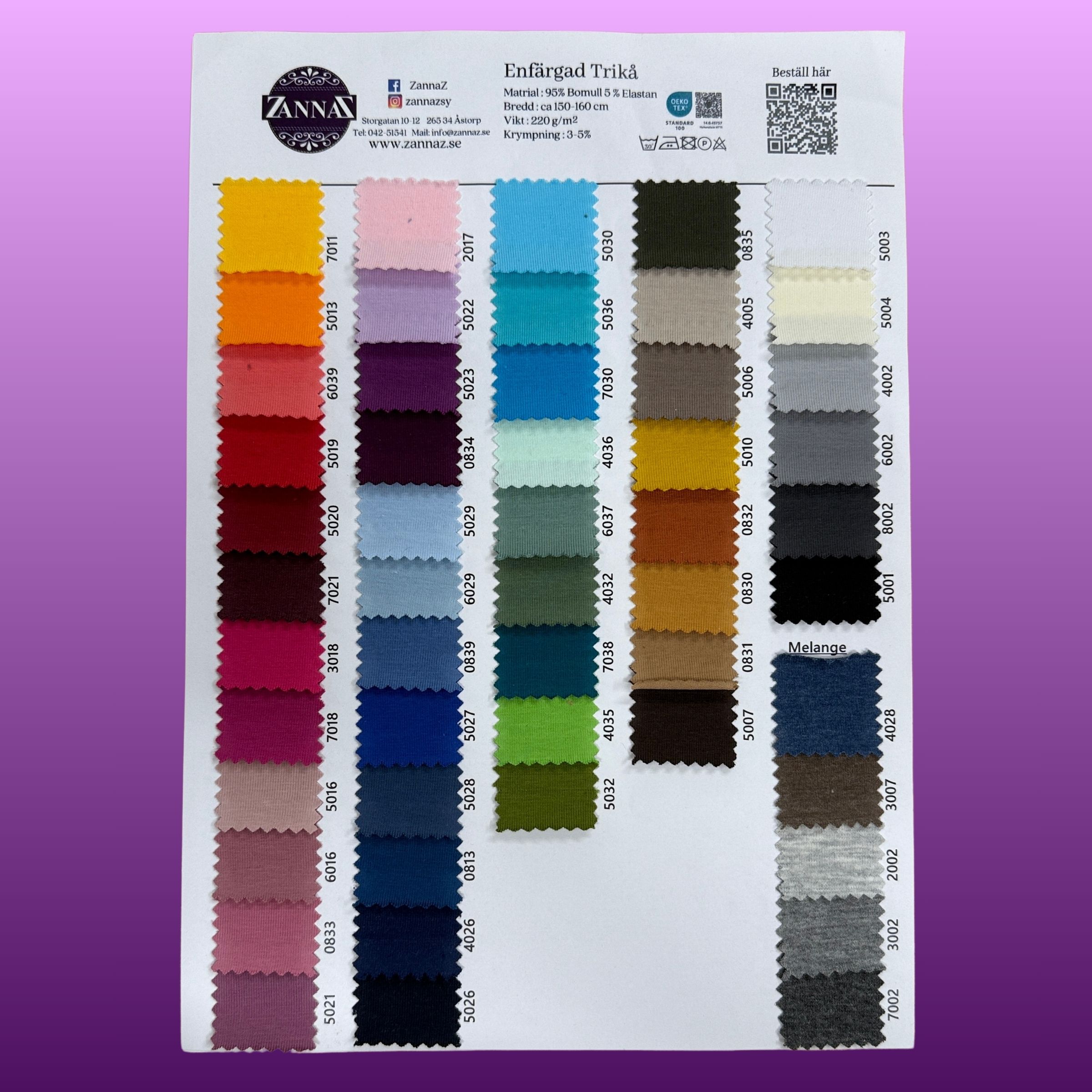 Nu blir det enklare än någonsin att matcha! Med vår färgkarta får du en tydlig överblick av våra 66 mest omtyckta nyanser – perfekt när du vill se hur färgerna ser ut i verkligheten och hitta den rätta tonen till dina tyger där hemma.