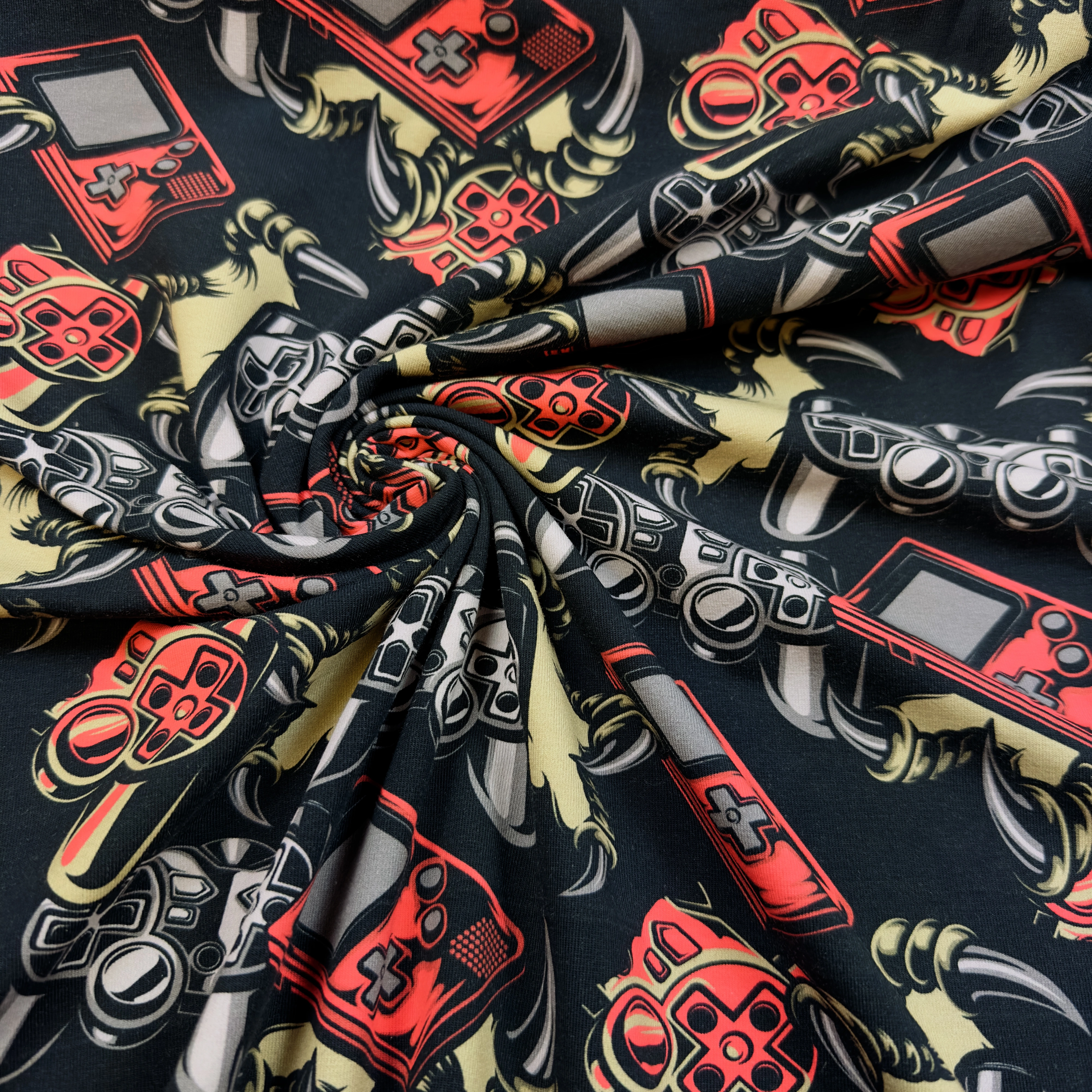 Detta är ett av våra egenproducerade trikåtyger som trycks i en begränsad mängd.