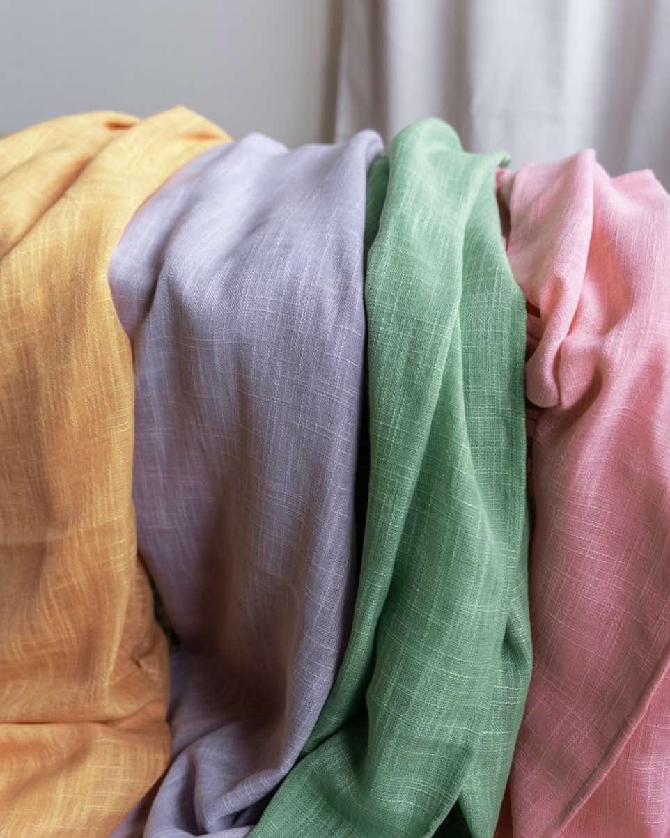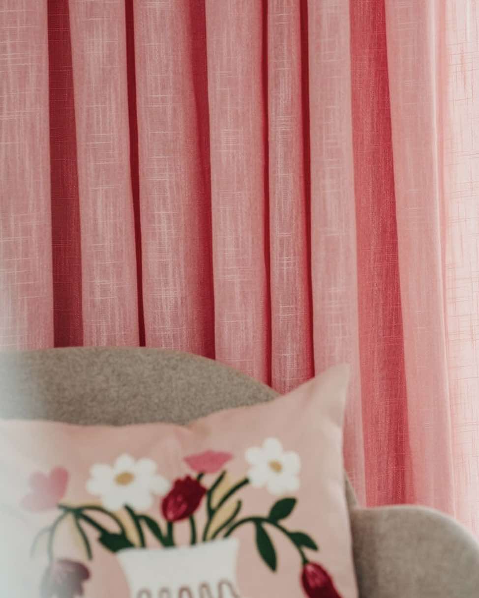 Enfärgade gardinlängder.