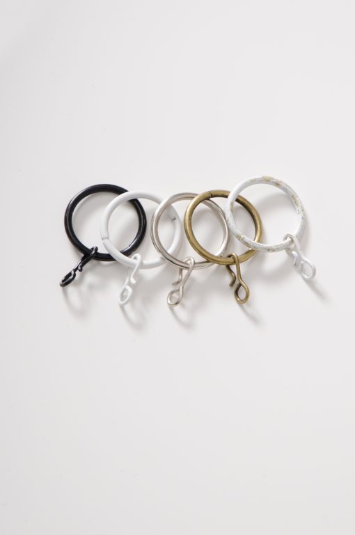 Gardinring för 25-28 mm stång Gardinring i metall inklusive ögla för att hänga gardinen på stången.