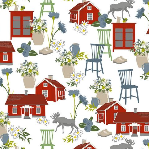 Härligt bomullstyg i svensk design som passar utmärkt till gardiner, kuddar, duk, väskor m.m.Mönsterrapport: 136cm