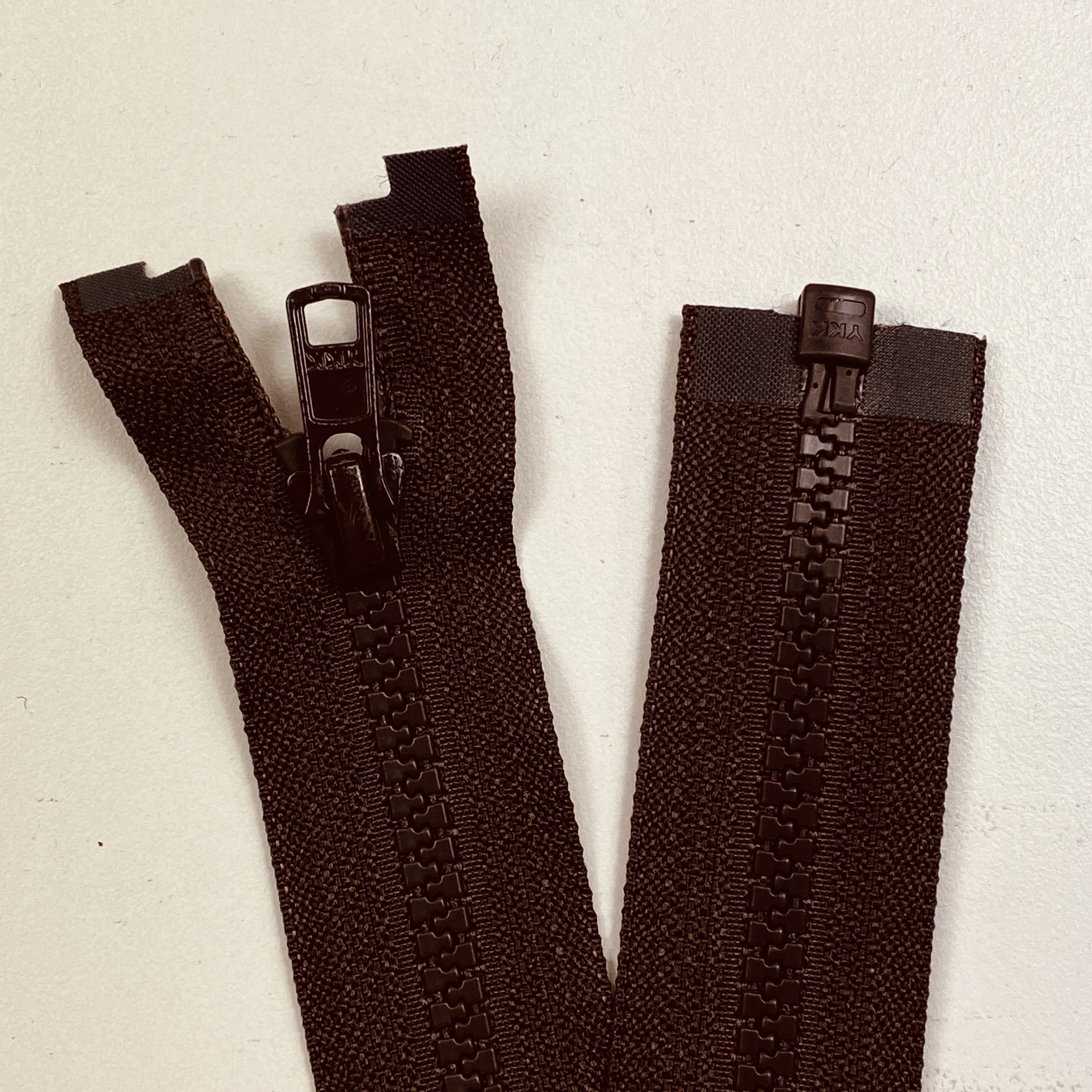 Delbart blixtlås av syntetmaterial med tänder (6 mm) för jackor.