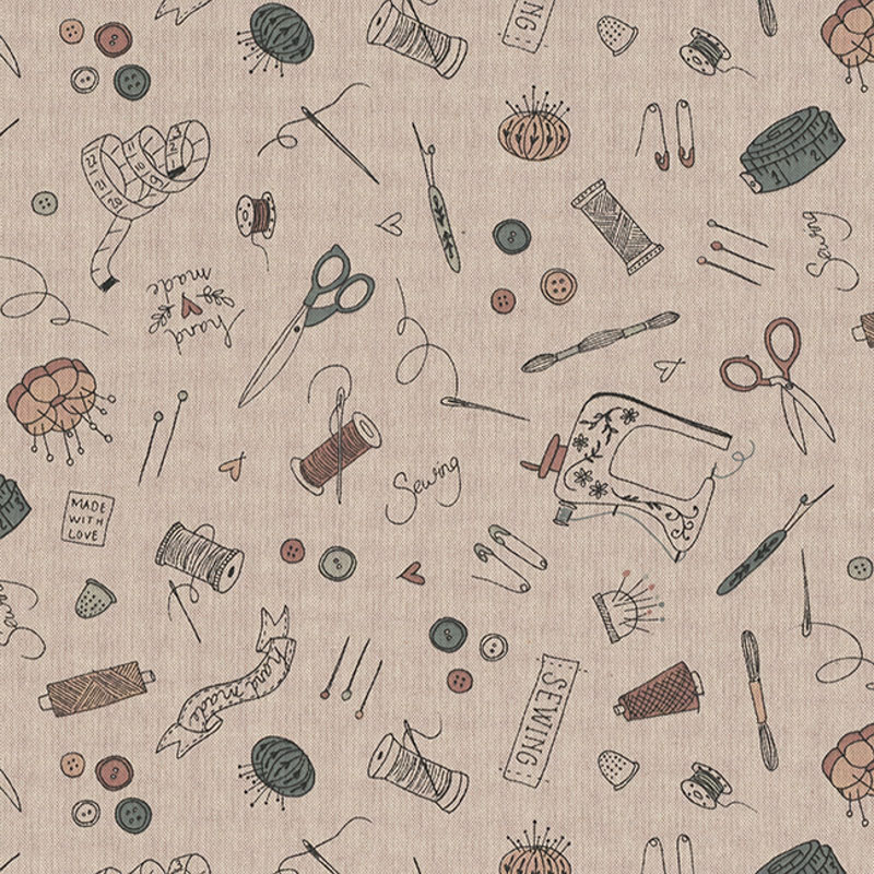 Tyget är vävt så att det efterliknar linnets levande struktur och matta uttryck, men polyesterinslaget gör det mer formstabilt och lättskött.