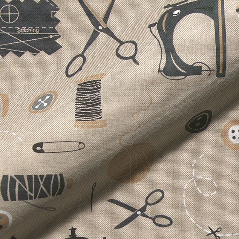 Tyget är vävt så att det efterliknar linnets levande struktur och matta uttryck, men polyesterinslaget gör det mer formstabilt och lättskött.