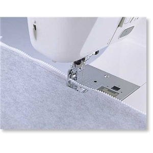 Syr lätt blixtlås och kantband. Fotens position kan justeras exakt efter blixtlåsets/kantbandets kant, vilket undviker de ojämna delarna på blixtlåset/kantbandet och trycker ned tyget en aning.