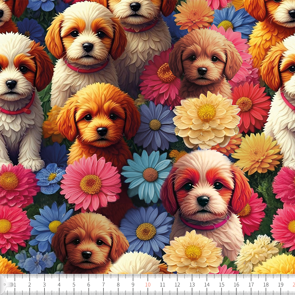 Digital tryckt trikåtyg med motiv.
