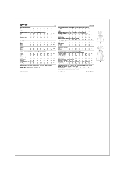 Klänning och jumpsuit har åtsittande, fodrad livstycke med prinsessömmar, rund halsringning, sidfickor, sydd fåll och dragkedja baktill. Ärmlös klänning View A har en rynkad kjol. Cropped jumpsuit View B har plisserade byxor med vida ben och korta ärmar.