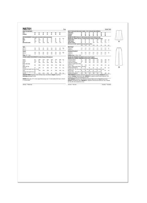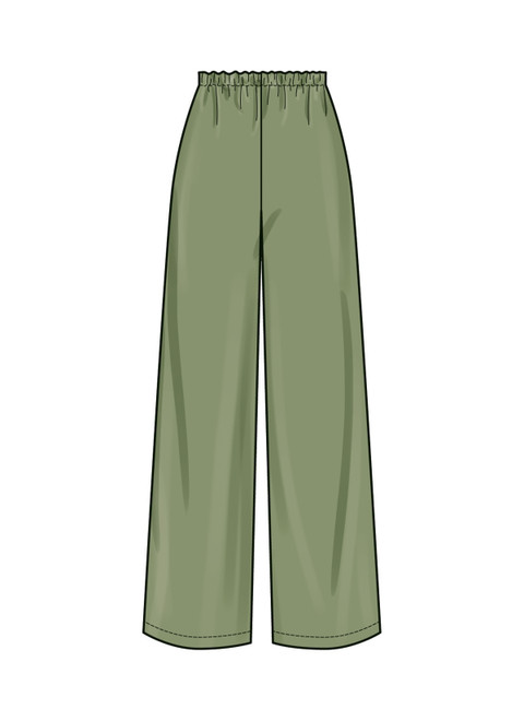 Löstsittande topp med knäppning framtill och semi-fitting pull-on byxor med resår i midjan och sidfickor är lätta att sy.SÖMNADSBETYG ⓘ : Lätt