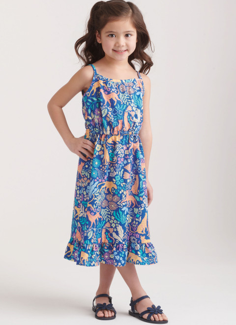 Skapa denna bedårande pull-on jumpsuite med fickor eller solklänning med volang undertill.SÖMNADSBETYG ⓘ : Genomsnitt