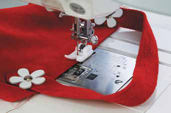 Glidpressarfoten tillåter enkel sömnad i material som lätt fastnar i metallfoten som t.