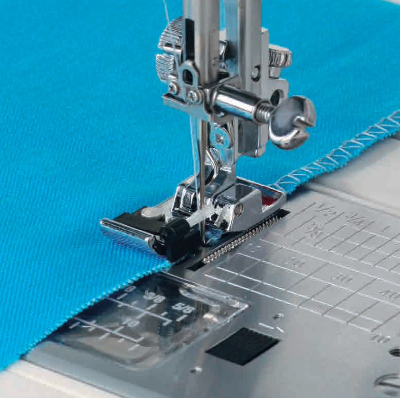 Borsten på foten förhindrar hoppstygn längs tygkanten.