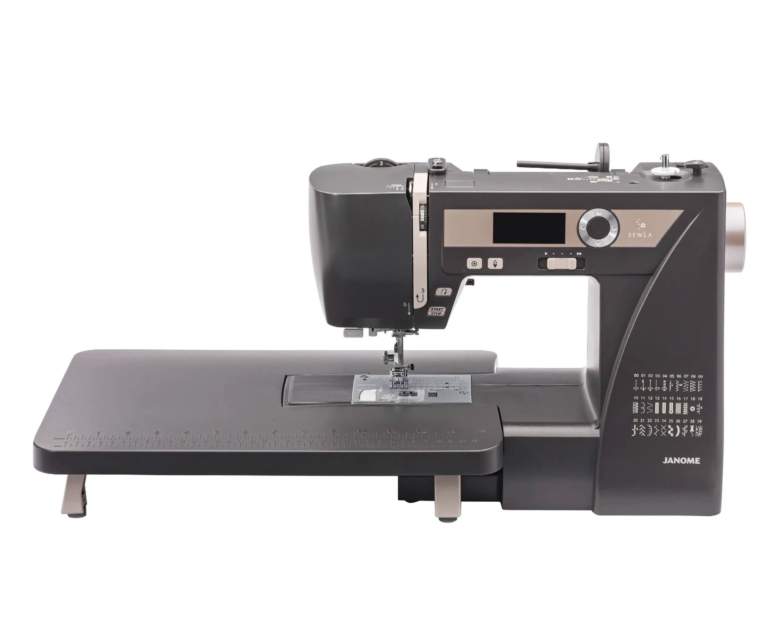 Den robusta konstruktionen, jämna tygmatningen (SFS Plus) och funktioner som nål upp/ner, pressarfotssensor och snabbt pressarfotsbyte gör SewLA lika perfekt för nybörjaren som för den erfarne sömnadsentusiasten.