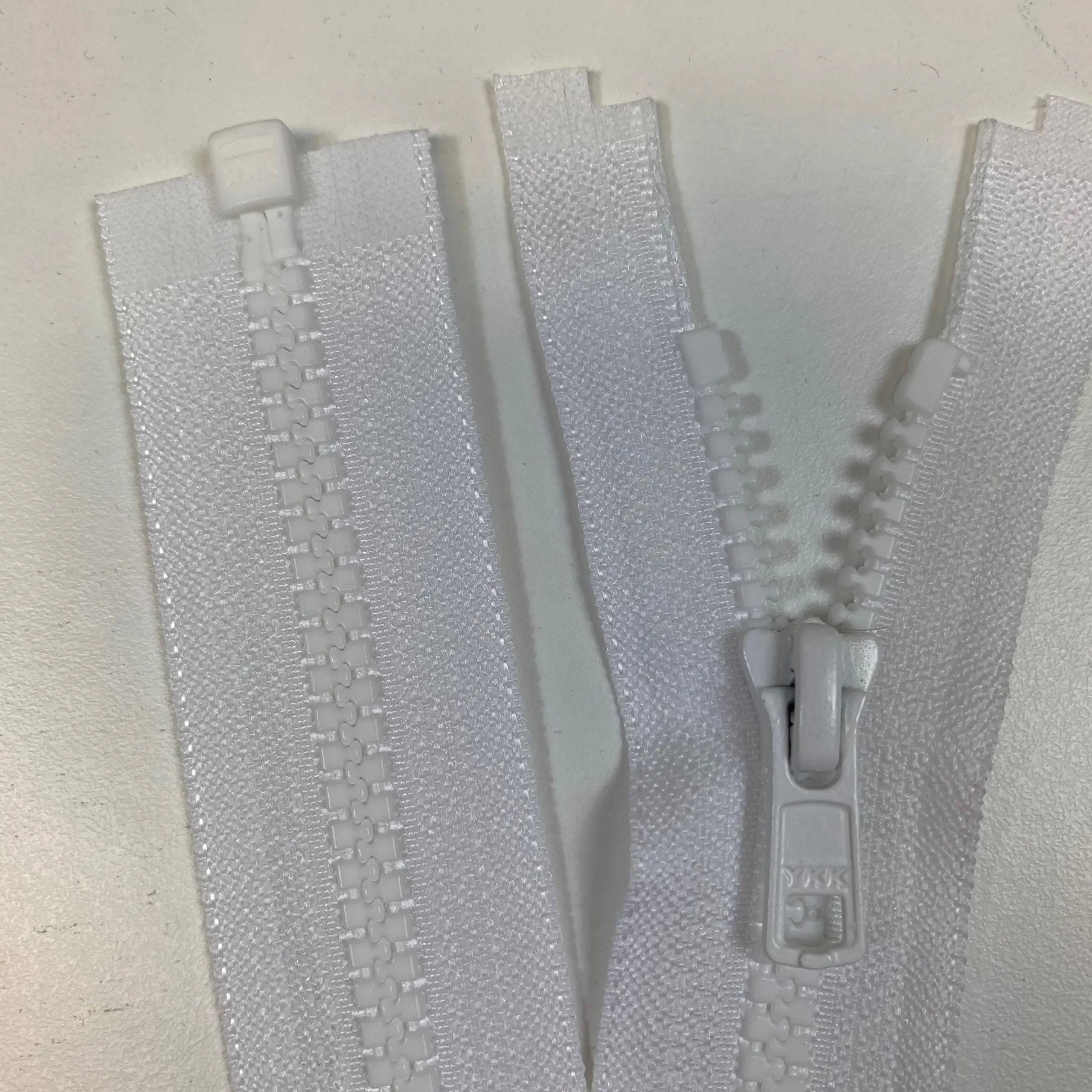 Delbart blixtlås av syntetmaterial med tänder (6 mm) för jackor.