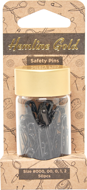 50 svarta säkerhetsnålar av högsta kvalitet gjorda av starkt, slitstarkt belagt stål med en säker stängning. Sorterade storlekar 10x storlekar 19mm, 23mm, 27mm, 34mm & 38mm.