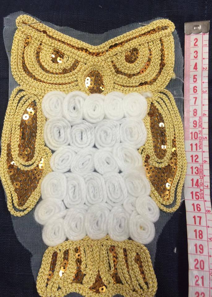 Märke med en butter uggla Att sy på.