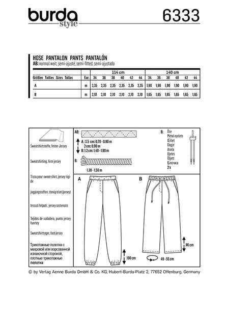 BURDA STYLE PATTERN 6333 MISSES' JOGGING PANT