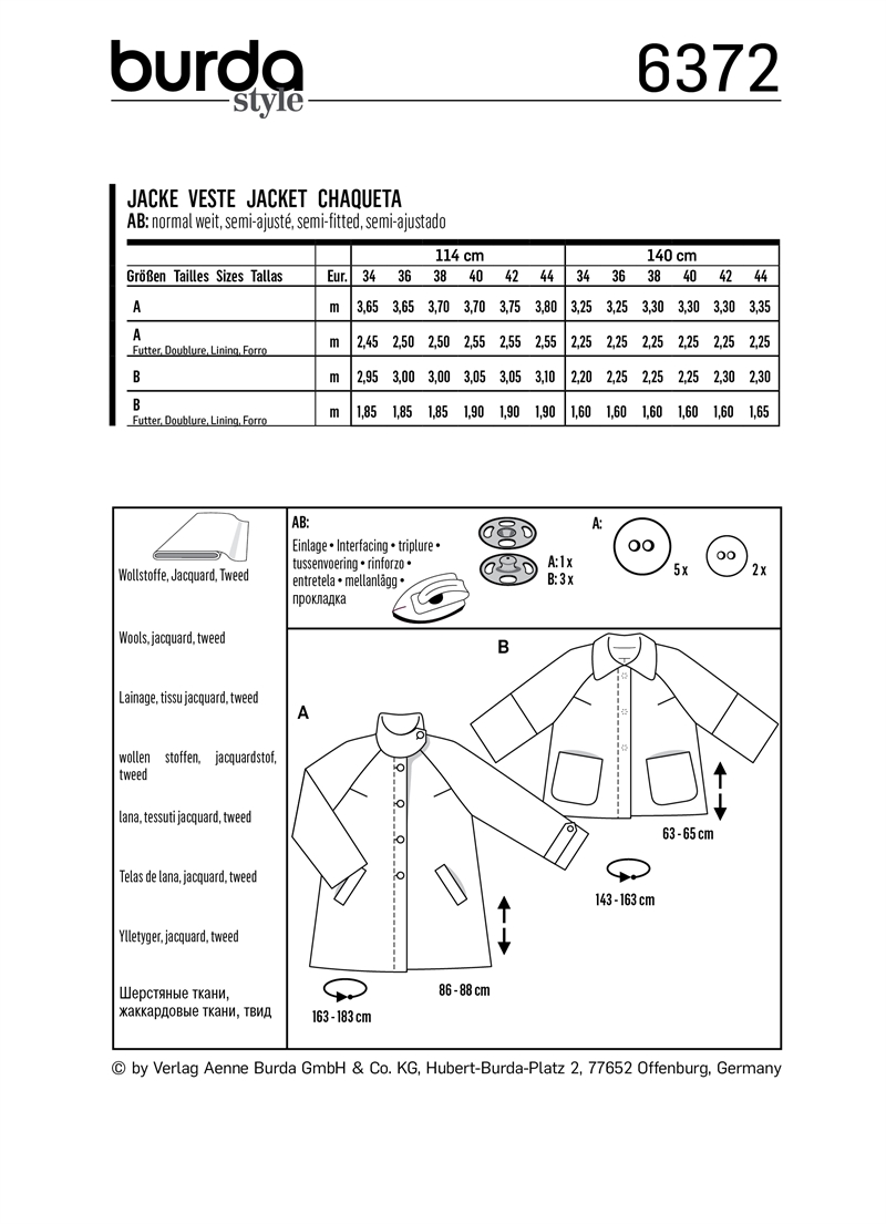 One pattern, two totally different styles: the longer raglan jacket made up in classic houndstooth fabric is a perfect match for Trousers/trousers. The short jacket with stylishly cropped sleeves and a small collar can be teamed with long and narrow skirts for a trendy look.