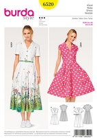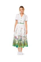 A new look for shirt blouse dresses. Both styles have a notched collar and are buttoned to the waist. The pleated skirt can be made up in two lengths. View A has sleeve bands. View B has short, turned up sleeves and a narrow belt.