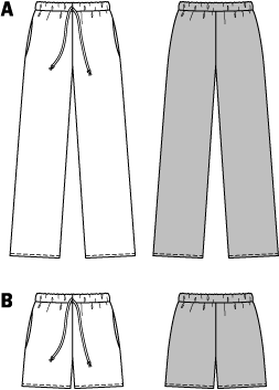Looking for super comfortable Trousers? Sew them yourself! Here is a super easy pattern for Trousers with a drawstring waist and in-seam pockets. Choose whatever length, fabric, color or print you like.