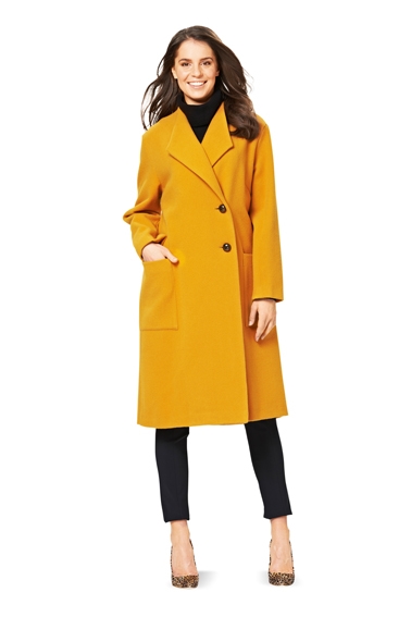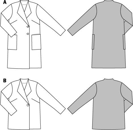 The trend for jackets and coats has returned to wool fabrics. Here are two chic and very wearable styles with an integral spade collar, slightly raised in back.