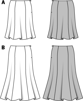 Gored skirts with softly flowing hems for midsummer days, coming into their own with delicate fabrics and floral prints. And also very easy to sew, that's really great.All patterns with seam & hem allowances