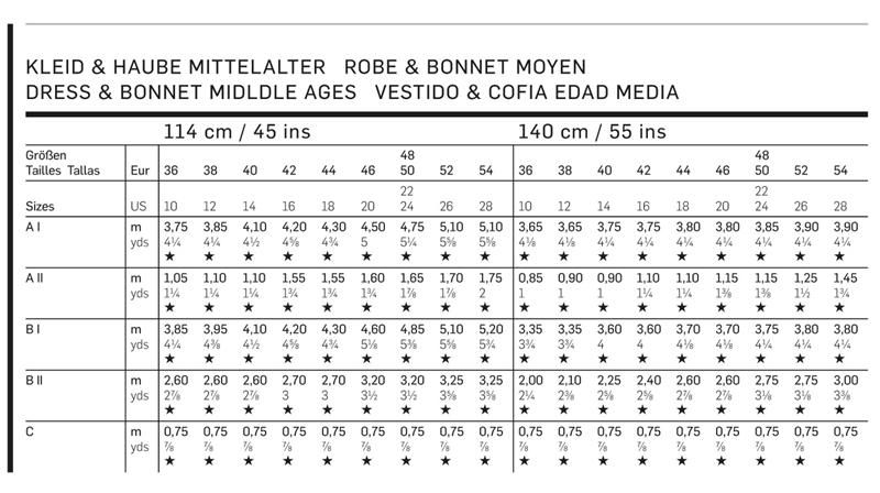 DRESS & BONNET MIDDLE AGESEU 36-54
