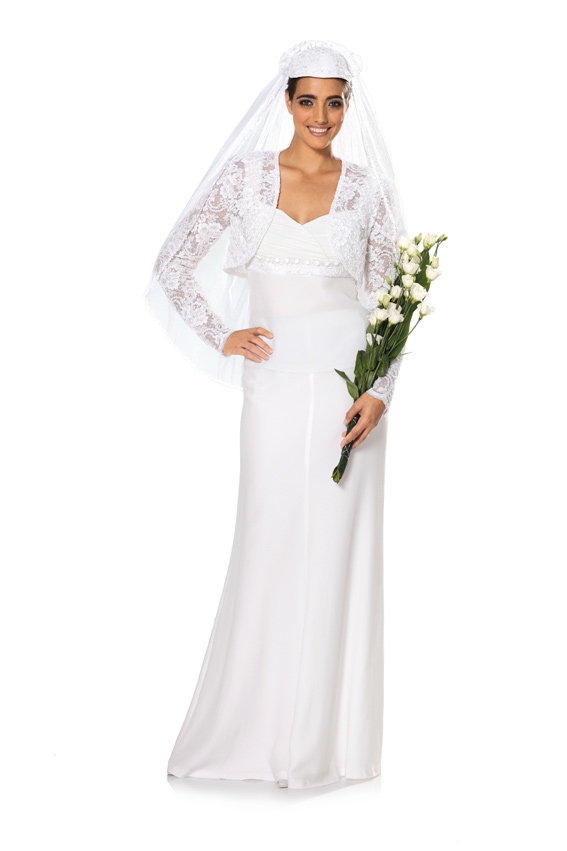 Whether with long or ¾-length sleeves, made of precious lace or discreet, you are right on the mark with the bolero and the waisted jacket. An excellent supplement for sleeveless evening gowns or bridal wear.