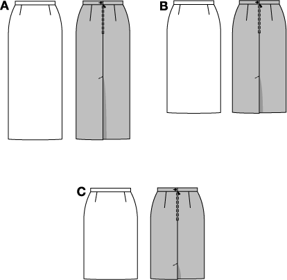 Straight, narrow skirt with a one-sided concealed walking slit in three fashionable lengths.