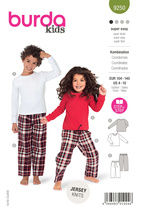Burda mönster Art-nr: 001_9250Storlek: 104-140Kläder: Byxor, Pyjamas, TröjorSvårighetsgrad : Mycket lättFör vem?: Flickor, Pojkar .