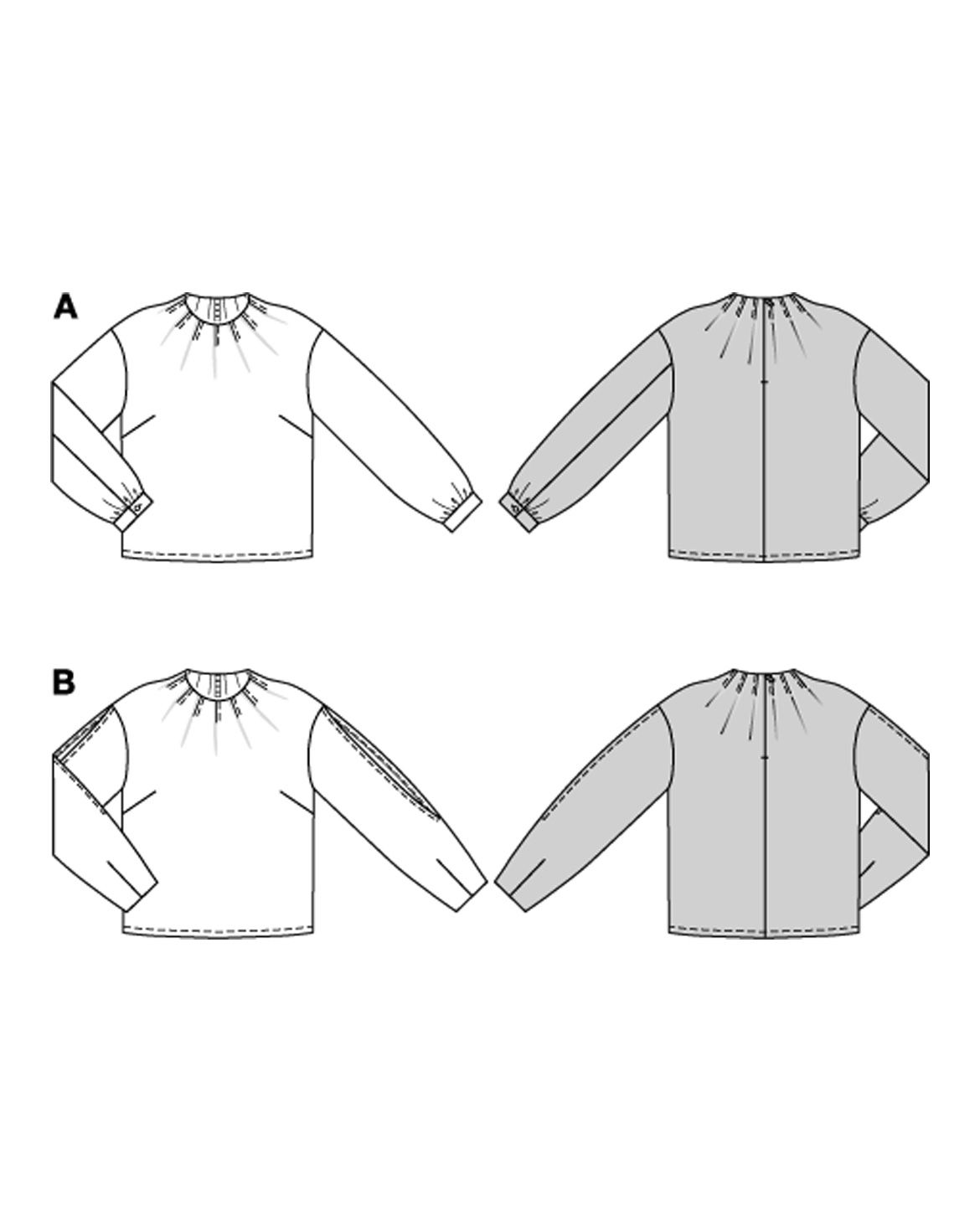 Denna blus finns i två mönster, som båda ger en wow-faktor. I det första mönstret ger veck runt halsringningen en unik accent som drar alla blickar till dig. Det andra mönstret fängslar med delvis sydda veck som ger sidenet ett böljande, nästan dynamiskt utseende, medan sofistikerade ärmsnitt subtilt avslöjar huden. Perfekt för nybörjare!