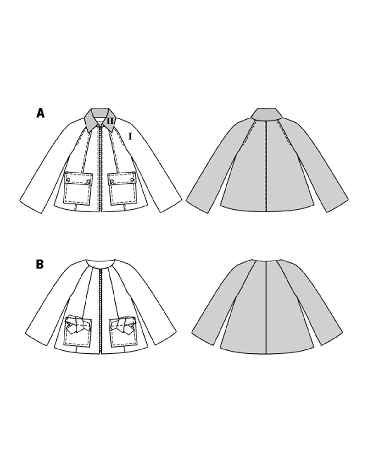 Ett mönster, två jackvarianter, och båda enkla att sy! Version 1 imponerar med manchesterkrage och extra stora påsydda fickor, medan de kantsydda sömmarna ger den en trendig look. Fashionistas kan till och med matcha den med glamorösa klänningar. Version 2 överraskar med en klockformad skärning och originella denim-origamifickor. Perfekt för dig som letar efter något speciellt!
