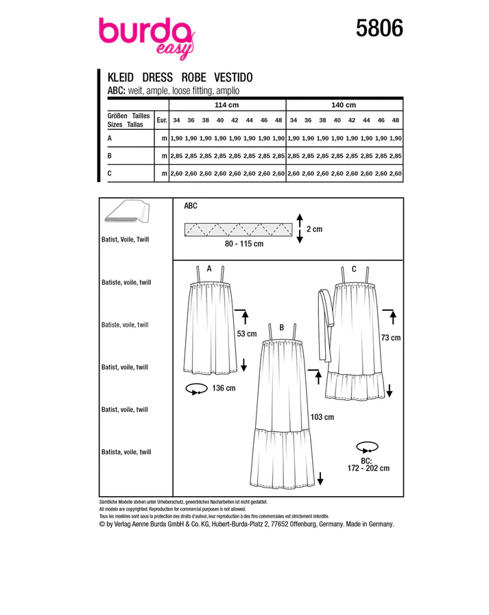 Art-nr: 1100641010990stdStorlek: 34,36,38,40,42,44,46,48Kläder: KlänningarTyger: Voile, Twill, ViskostygerSvårighetsgrad : Mycket lättFör vem?: Damer