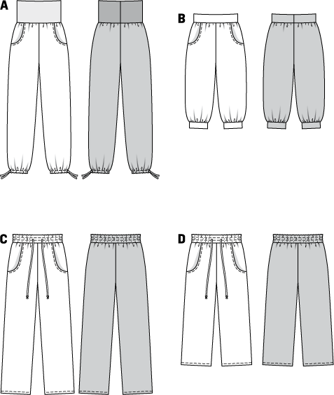 PANTS Casual sports and leisure Trousers for her and him, with round slant pockets. Different waist solutions and lengths.