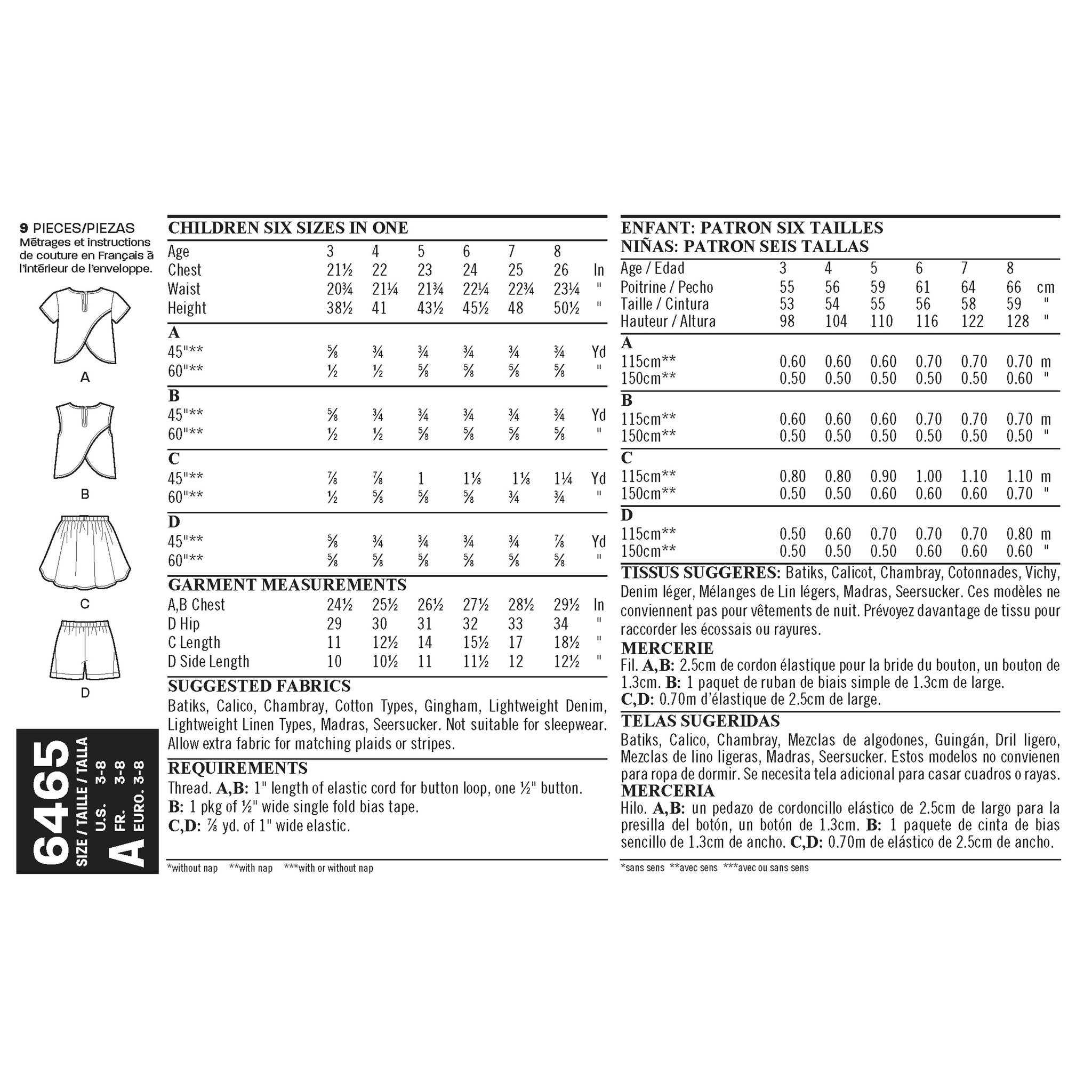 New Look 6465 - Top Kjol Shorts - Flicka