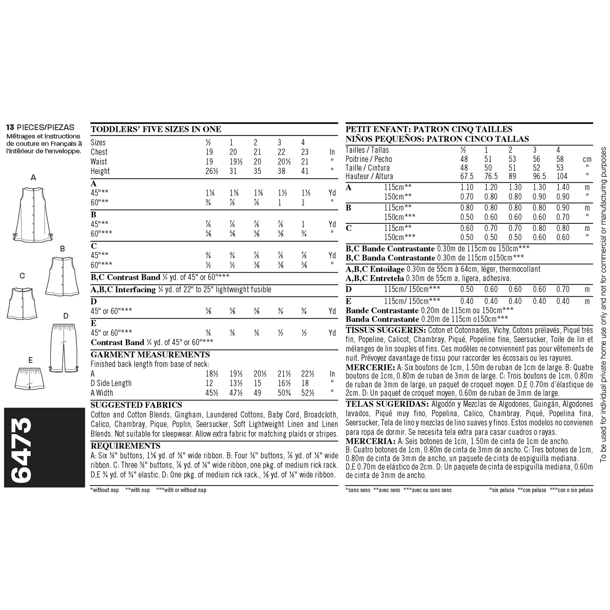 New Look 6473 - Klännning Top Byxa Shorts - Baby Flicka