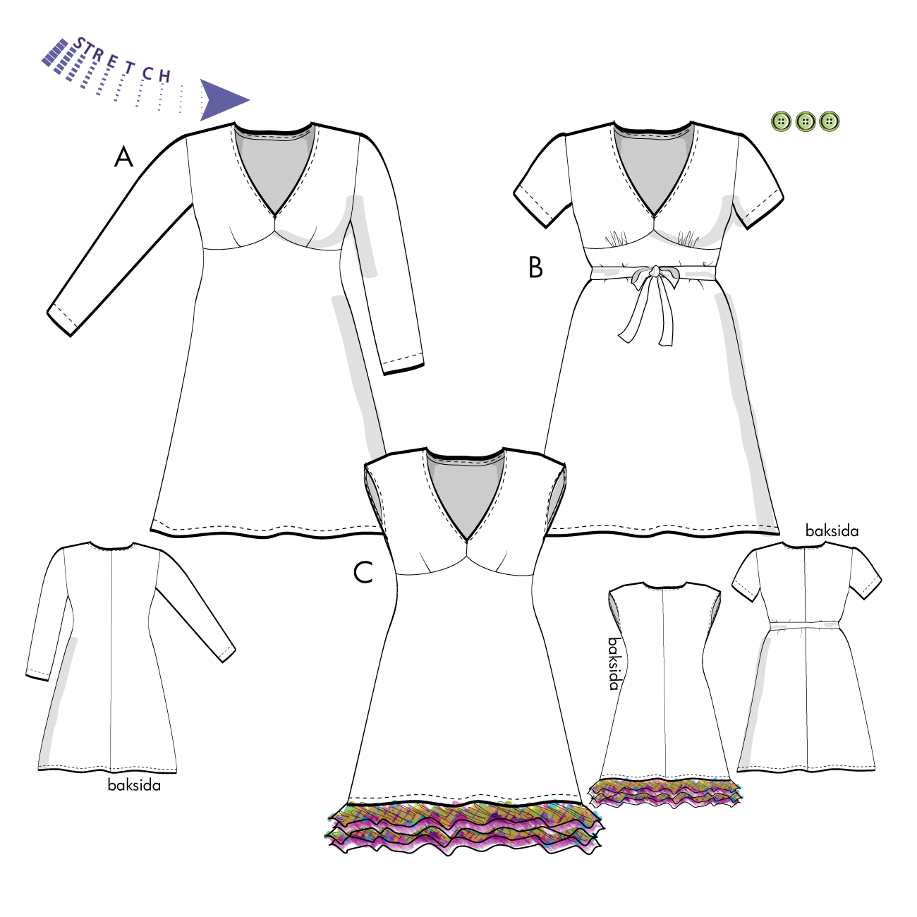 Klänning för stretchiga jerseytyger.