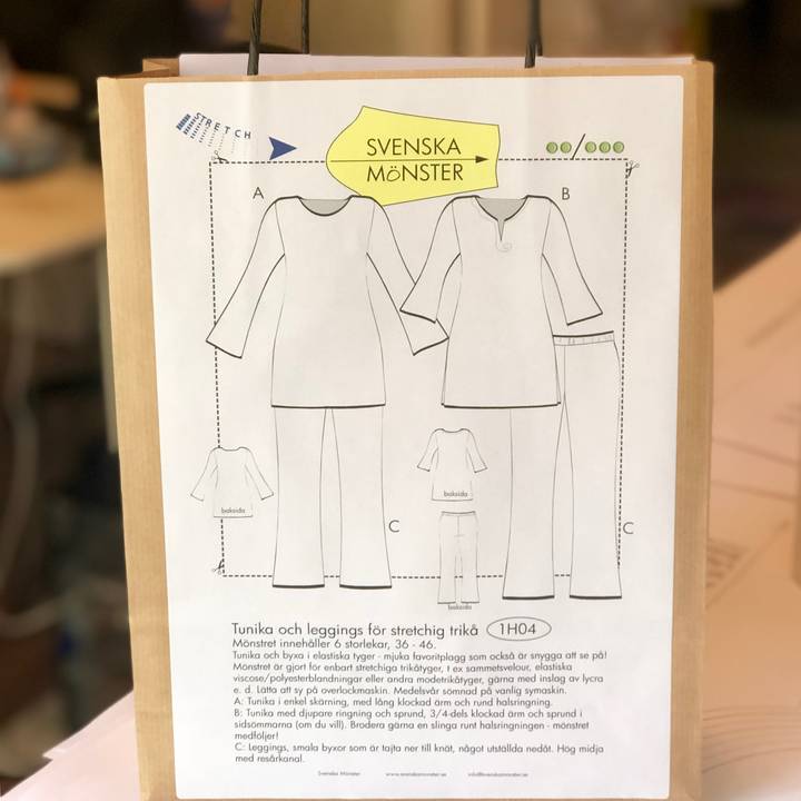 Tunika och byxa i elastisk trikå - mjuka favoritplagg som också är snygga att se på! Mönstret är gjort för enbart stretchiga trikåtyger, t ex sammetsvelour, elastiska viscose/polyesterblandningar, stretchfrotté eller andra modetrikåtyger.