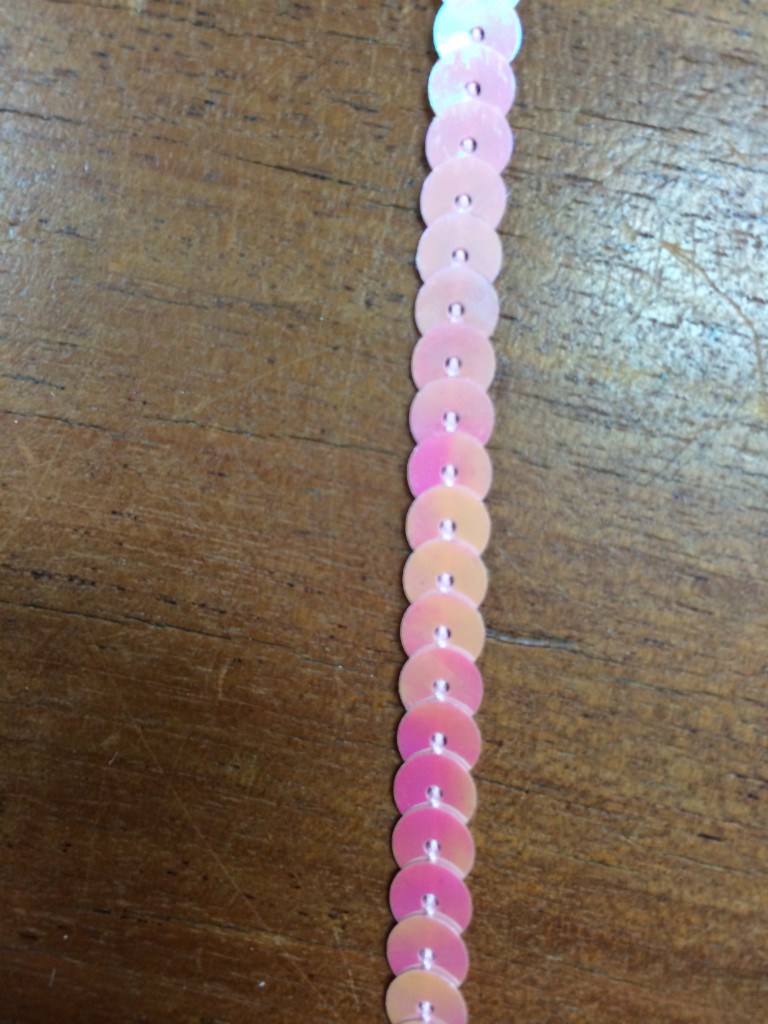 Enkelradigt paljettband  Färg : rosa hologram Pris avser 1 m.