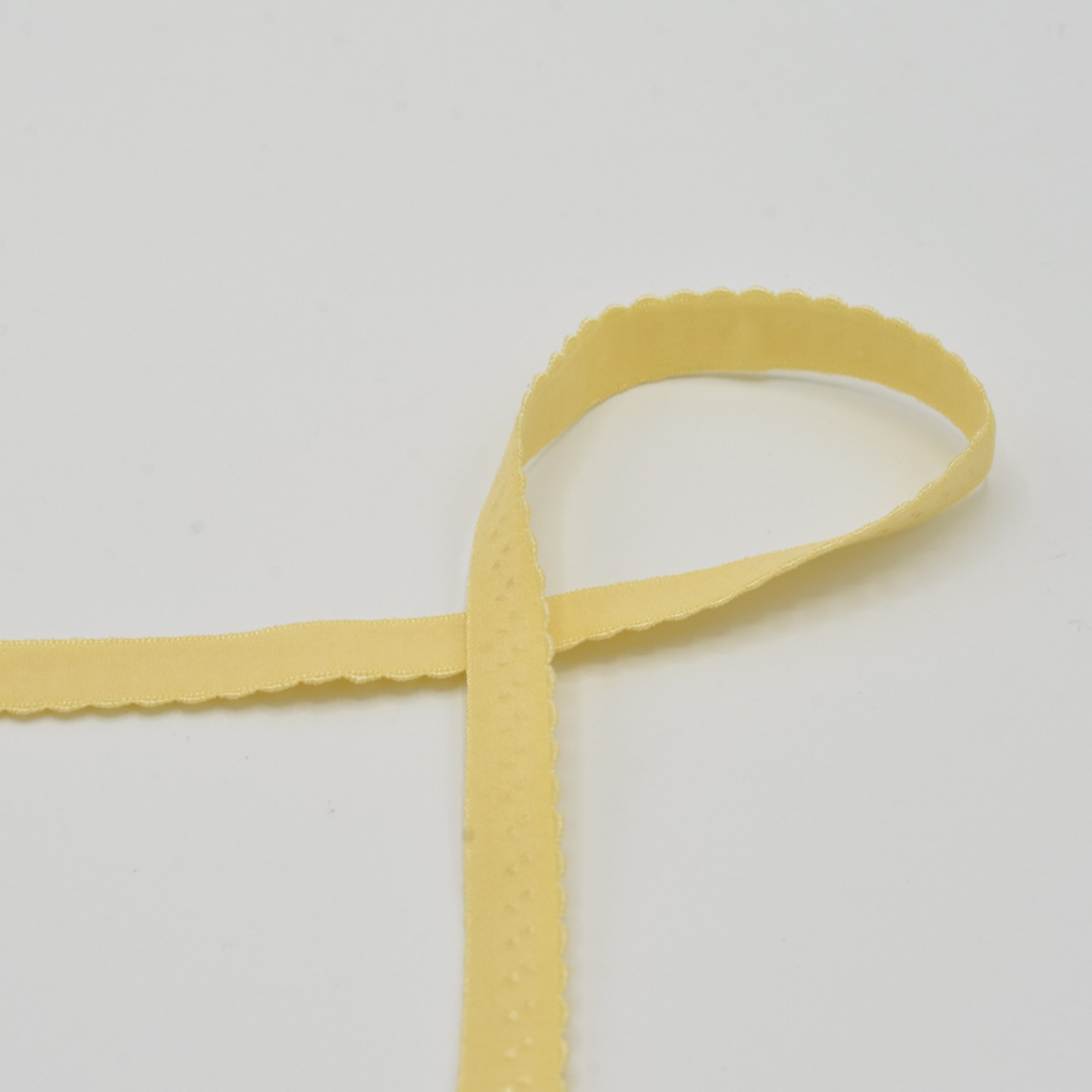 Färdigviken resår som passar bra till underkläder och i halsringningar, bara att föra in tyget i "fickan"