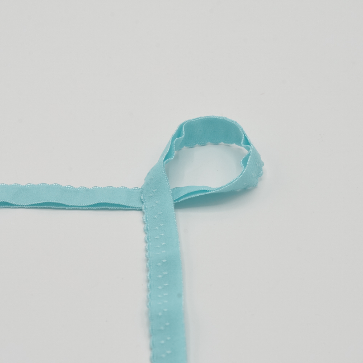 Färdigviken resår som passar bra till underkläder och i halsringningar, bara att föra in tyget i "fickan"