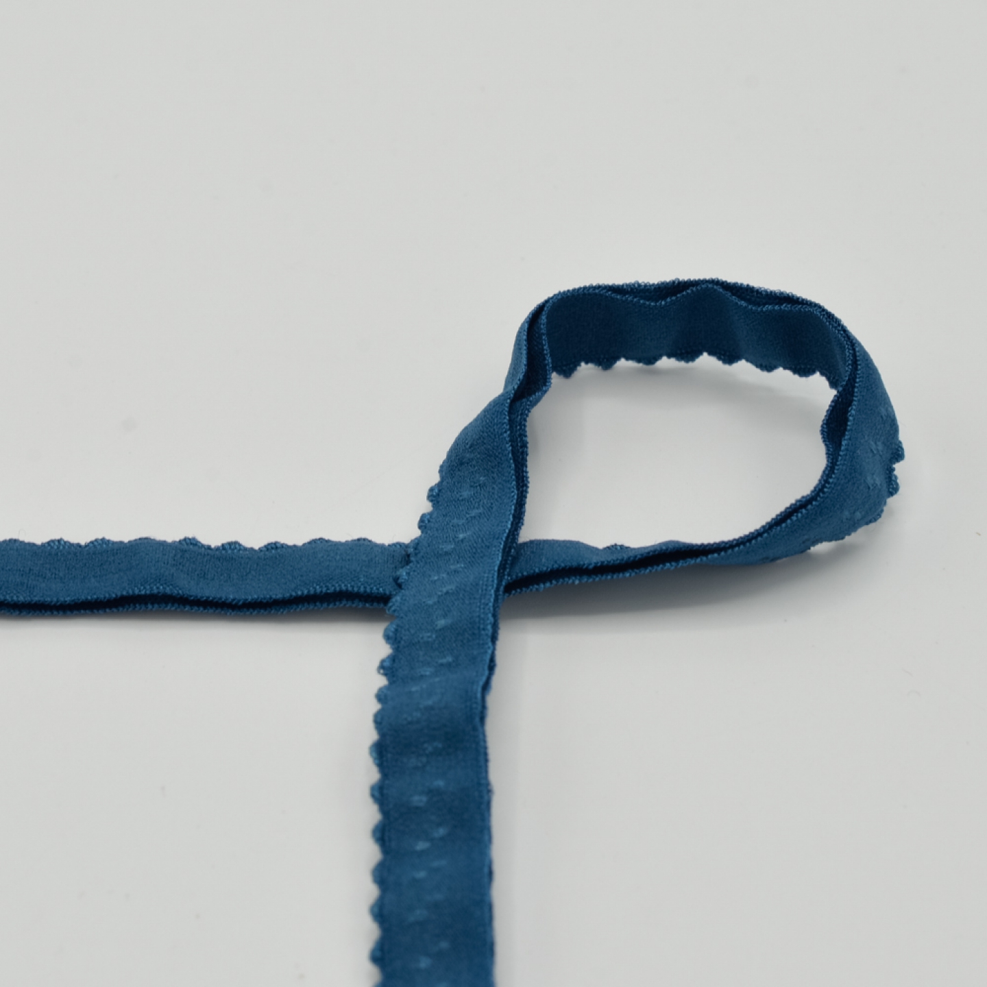 Färdigviken resår som passar bra till underkläder och i halsringningar, bara att föra in tyget i "fickan"
