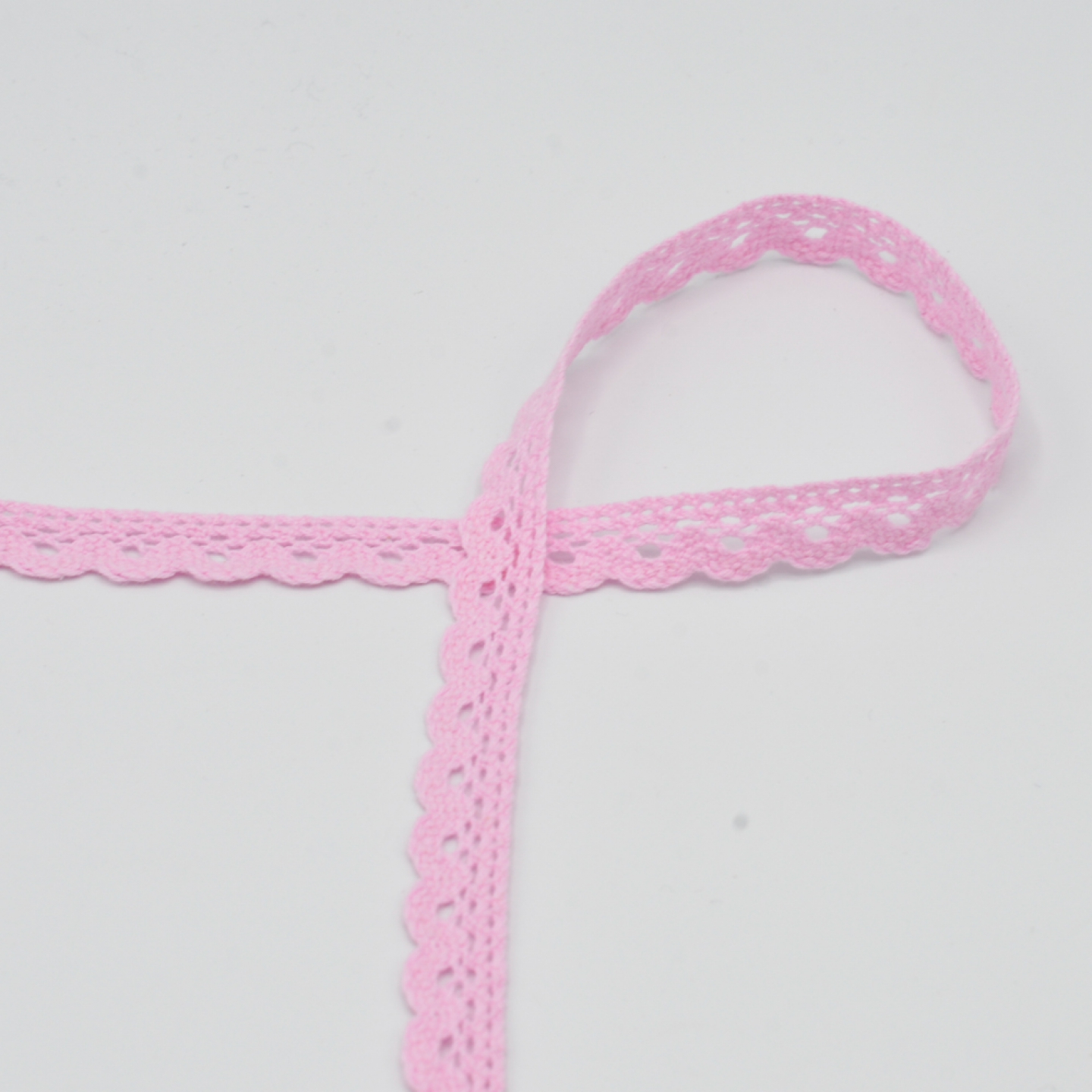 Skapa vackra och detaljerade projekt med vår virkade spets i 15 mm bredd. Denna spets är tillverkad av 100% bomull till dina skapelser.